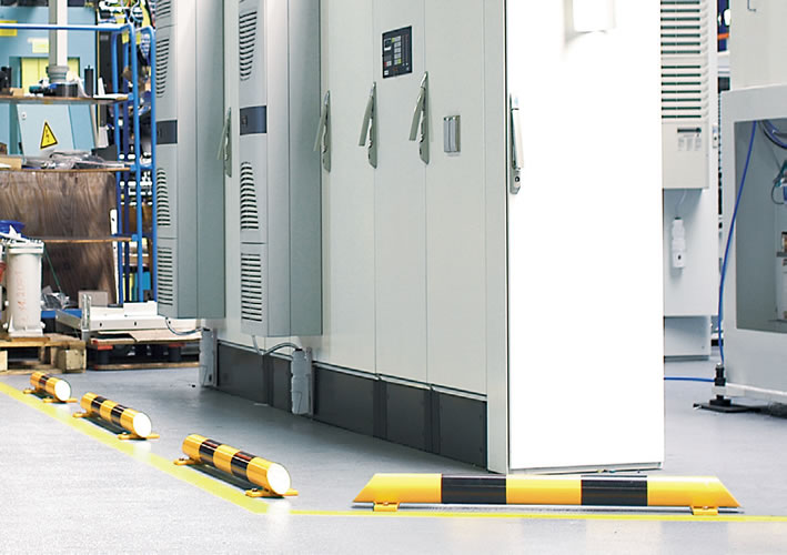 בר ההגנה מיועד לעצור עגלות משטחים, קונטיינרים מתגלגלים. נועד להגן על מדפים, ארונות וכו.. מונע נזק עתידי. בעל מרווח בין אחד לשני על מנת לאפשר מעבר לארונות הדורשים נגישות (ארון חשמל, מכשירי הפעלה, מתגים, ארון עזרהראשונה…),כמו כן בזכות ההתקנה במרווחים ניתן לתפוס שטח גדול במחיר מוזל. בעקבות גובהו הנמוך של מגביל התנועה ניתנת אפשרות גישה נוחה וללא הפרעה לאזורים המוגנים.