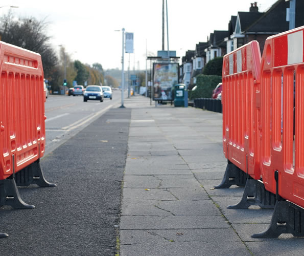 רגל הבסיס קצרה בצד הולכי הרגל כדי למזער את הסיכון למעידה. הרגליים ניתנות לסיבוב של 360 מעלות, ובכך מאפשרות לתמרן את הגדר בעת יישום או הובלה.