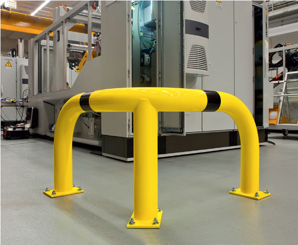 מעקה הגנה פינתי בעל שלוש רגליים XL בקוטר 108  מ"מ פותח במיוחד להגנה על פינות ודרכי מעבר  למתקנים רגישים וחשובים (כגון: צינורות, עמודים, מכונות ומשטחים רגישים, והגנה חזקה במיוחד באזורי תנועה במפעלים/מחסנים.).