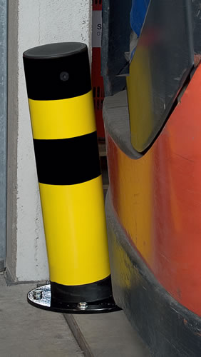 עמוד הגמיש עם אפקט שמיעה מיוחד בזמן נגיפה, כולל בתוכו קפיץ פלדה המשולב עם באפר פוליאוריתן שסופג את עוצמת המכה, באמצעות קפיץ הפלדה ממזער את הנזק לעמוד ולכלי הרכב (מלגזה, משאית וכו..) ושומר על הרצפה, מגן על דלתות אש, שבילי תנועה וגישה, רמפות העמסה ואזורי כניסה ויציאה.
