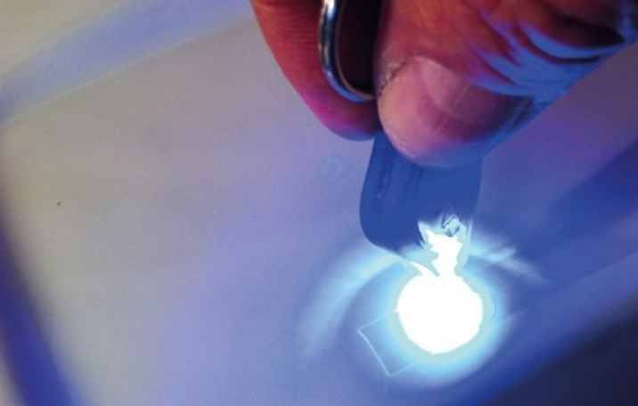הקשיית החומר נעשית בעזרת נורת UV (מסופק בקיט)