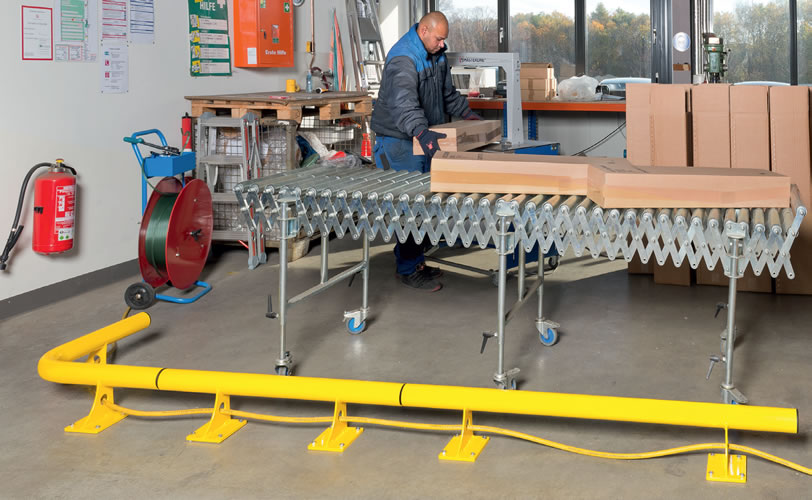 מערכת בקרה חדשה שפותחה להפרדת נתיבי תנועת מלגזות: הגנה מפני נזק לקירות, למכונות, לציוד טכני ולתיחום סביבות עבודה. המגביל תנועה מיוצר מצינורות פלדה עבים באיכות גבוהה ומותקן באמצעות פלטות בסיס, המרותכים לצינורות, בעובי 10 מ“מ. כל הצינורות המתכת צבועות בתנור באבקה, עם חלקי פלסטיק שחורים ויצוקים בקצוות הצינור.