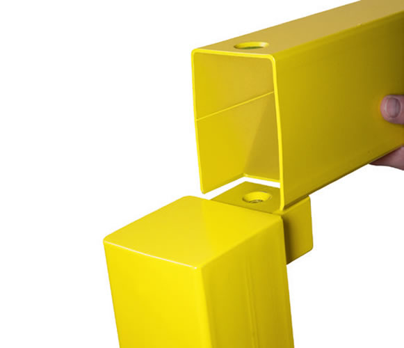 חדש: זווית הגנה תחתית עשויה פלדה, בצביעה בתנור בצבע צהוב. זווית ההגנה פותחה במיוחד כדי למנוע מעבר של שיניי המלגזה מתחת לגדר ובכך לספק הגנה מקסימלית. עובי דופן 4 מ“מ ו 5- מ“מ, גובה ) 200 מ“מ